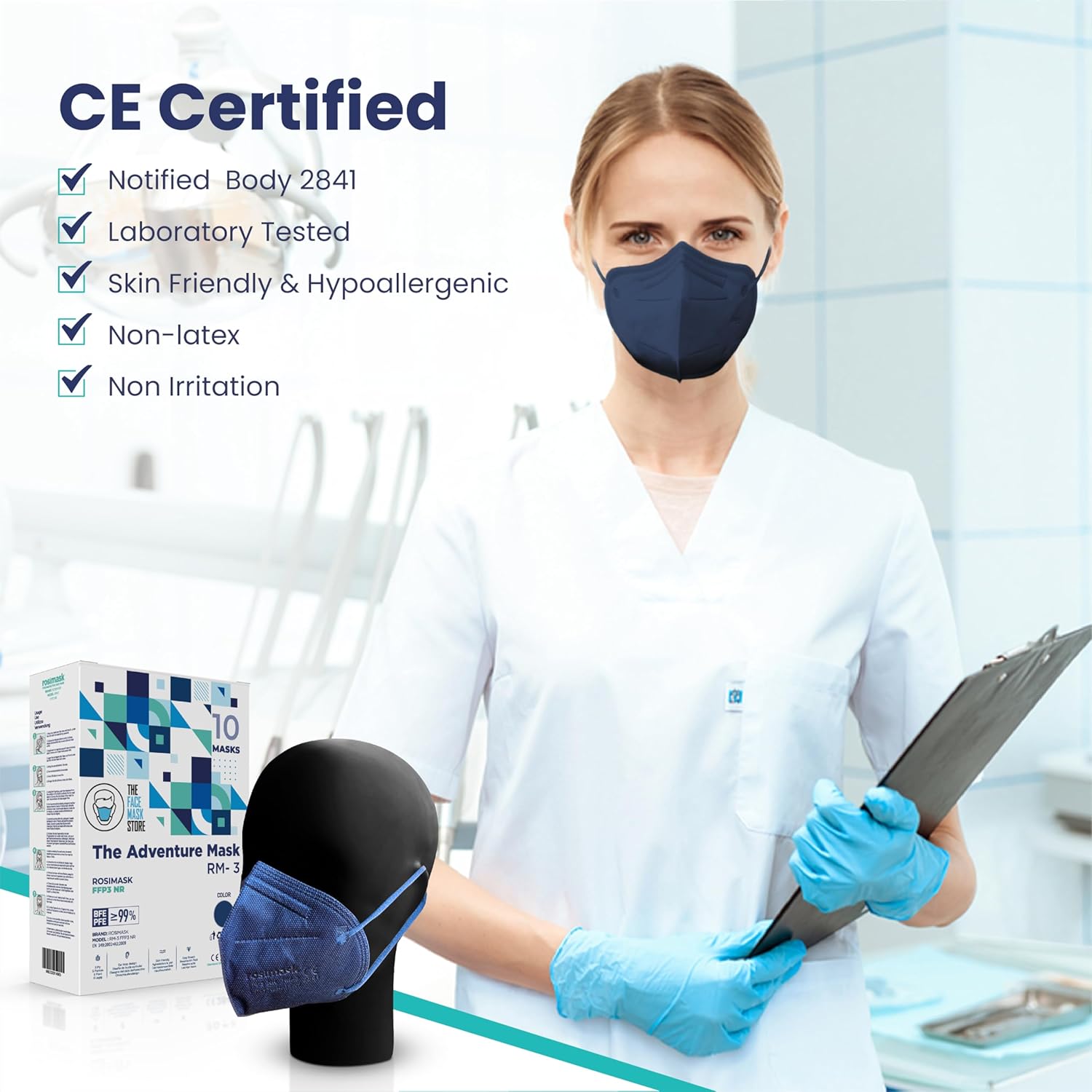 Adjustable, patented design with tear-resistant Comfort ear loops ensures a snug fit. Ideal for prolonged wear, from clinics to work and shopping. Prevents glasses fogging for a secure seal. Harness top-tier particle protection with 5 layers filter efficiency that reaches 99.5%