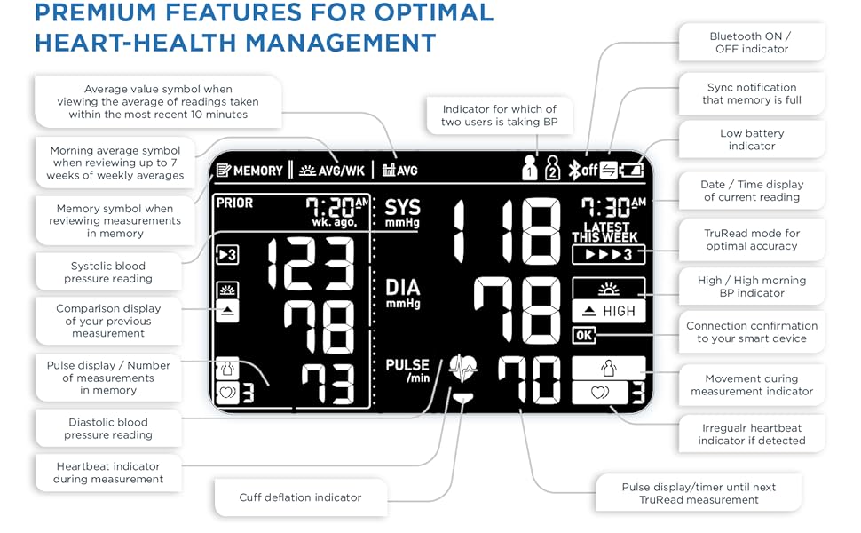 - Dual-User Support: Stores up to 200 readings (100 per user) with date/time for long-term tracking